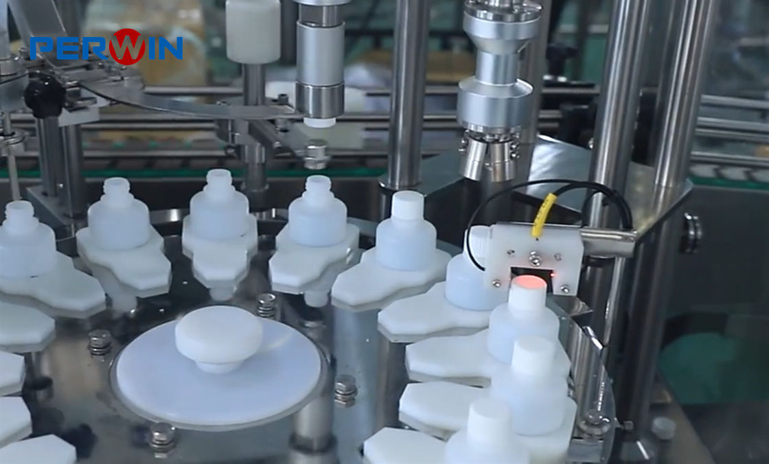 Double-station Follow-up Filling. Manipulator Automatic Cap Removal, Pre-capping And Capping Technology, Driven By Precision Cam Mechanism. Servo Technology Controls Capping Torque. Automatic Cap Sorting Unit And Soundproof Cover. Lifting Filling To Prevent Splashing.
